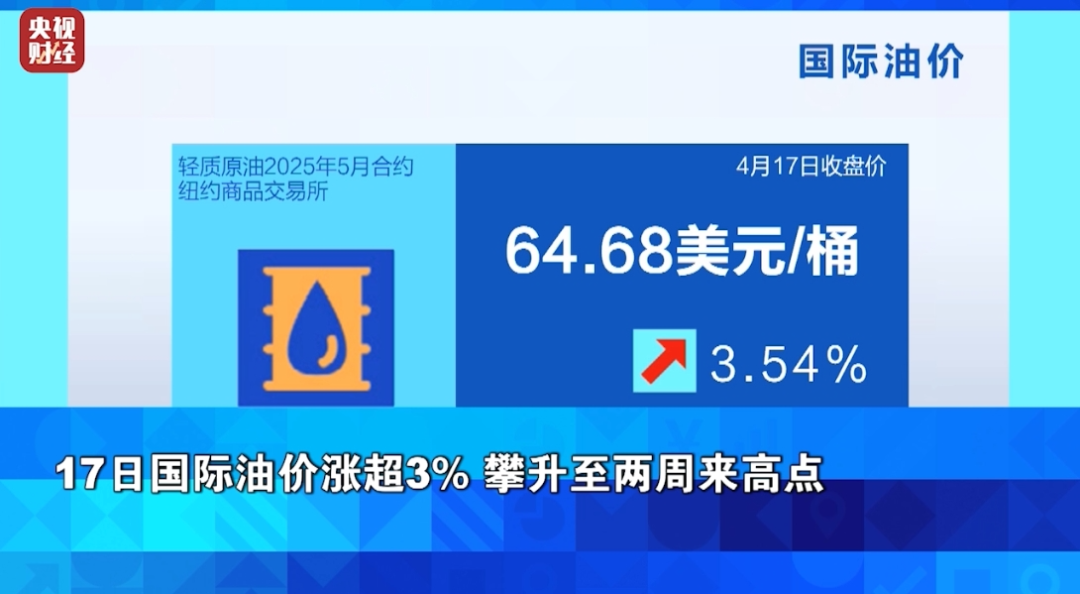油价方面,美国对伊朗石油出口实施新一轮制裁,叠加欧佩克减产计划进一步支撑原油市场,周四国际原油价格攀升至两周来高点。截至当天收盘,纽约商品交易所5月交货的轻质原油期货价格收于每桶64.68美元,涨幅为3.54%;6月交货的伦敦布伦特原油期货价格收于每桶67.96美元,涨幅为3.20%。